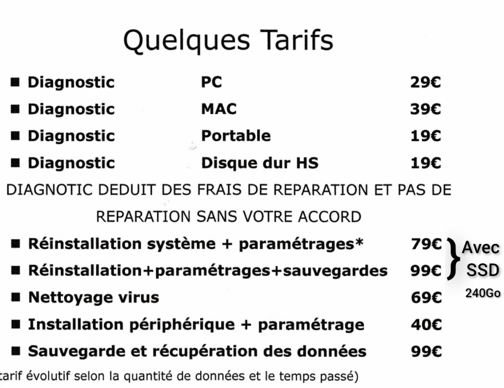 Tarifs de base réparation IPHONE ( peux varier en fonction de la qualité de pièces demandées )